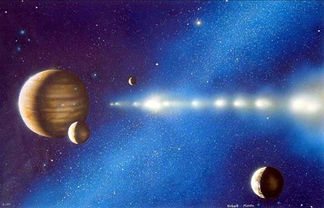 Prenons un exemple à travers une actualité pas trop ancienne qui nous ramène à l'astrologie : en juillet 1994, une comète appelée Shoemaker-Lévy 9 a percuté Jupiter, collision prévue et donc observée en direct par les astronomes. Qu'ont-ils concluent ? Et bien que Jupiter, la plus grosse planète du système solaire (son diamètre est 11 fois celui de la Terre) était un boulier qui protègerait la Terre des comètes et autres météorites. Ce phénomène s'explique par le fait que la masse de Jupiter attire par gravité les corps environnants, modifiant ainsi leur trajectoire.