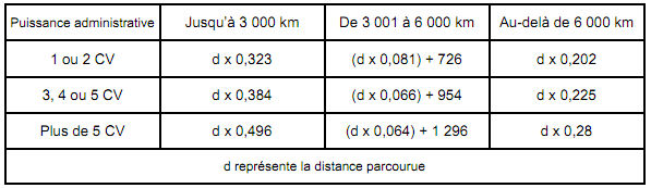 Frais kilométriques : le barème 2011 Le barème kilométrique publié par l’administration prend en compte notamment les éléments suivants : dépréciation du véhicule, frais d’achat des casques et protections, frais de réparation et d’entretien, dépenses de pneumatiques, consommation de carburant et primes d’assurances…