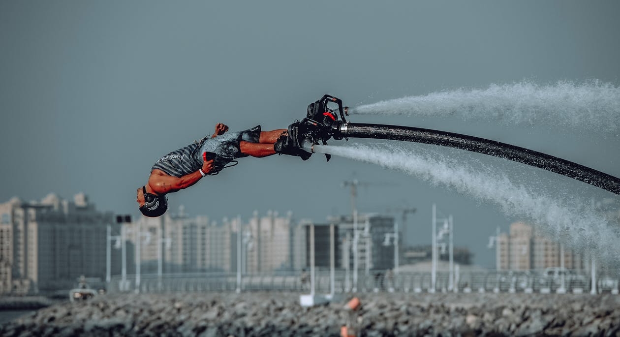Le pilote se tient debout sur une plate-forme reliée par un long tuyau souple à l'embarcation, ses pieds sont fixés par une paire de bottes à la manière des snowboards. L'eau sous pression produite par l'hydrojet de la motomarine est acheminée vers des buses à jet et fournit une poussée qui permet de monter jusqu'à quinze mètres dans les airs ou de plonger tête la première dans l'eau.