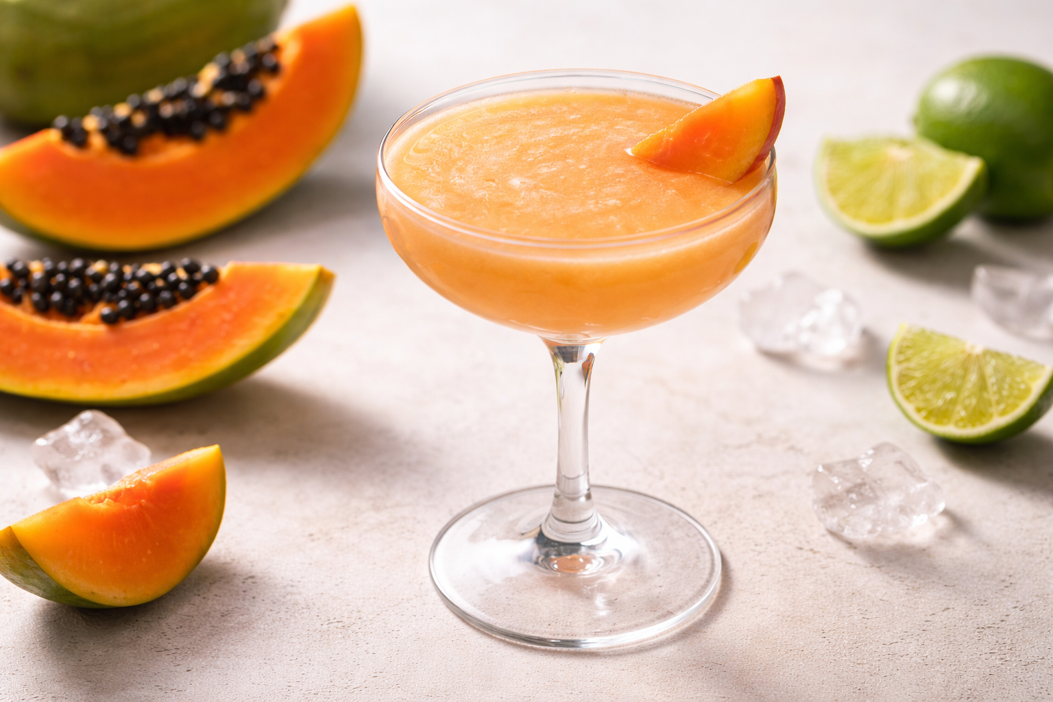 Certains fruits sont évidents en cocktail, d’autres beaucoup moins. La papaye fait partie de ces ingrédients discrets, souvent sous-estimés, mais capables d’apporter une texture unique. Dans cette revisite du Daiquiri, elle remplace en partie le sucre classique pour offrir un rendu plus rond et plus souple.