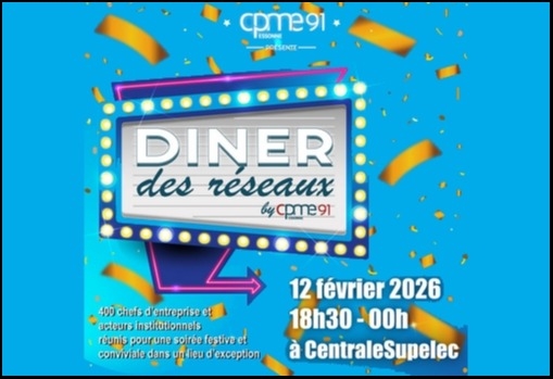 Le développement d'une entreprise repose autant sur la solidité de ses projets que sur l'étendue de son réseau. Le 12 février prochain, la CPME 91 organise une nouvelle édition de son événement phare, le Dîner des Réseaux, dans le cadre prestigieux de CentraleSupelec.
