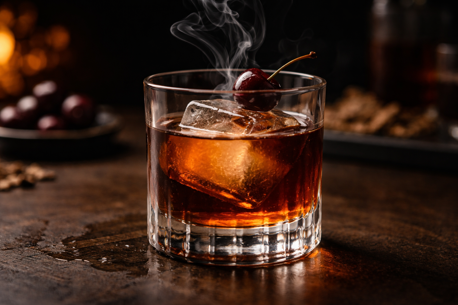 Certains cocktails reposent sur la précision, d’autres sur la transformation des arômes. Smoked Cherry appartient à cette seconde catégorie. Ici, la cerise n’est pas simplement un élément décoratif : elle devient une composante à part entière, enrichie par une légère note fumée qui modifie la perception du cocktail.