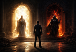 Un homme se trouve dans une pièce où il y a deux portes: la porte de l'enfer et celle du paradis. Au centre de la pièce, il y a deux gardiens...